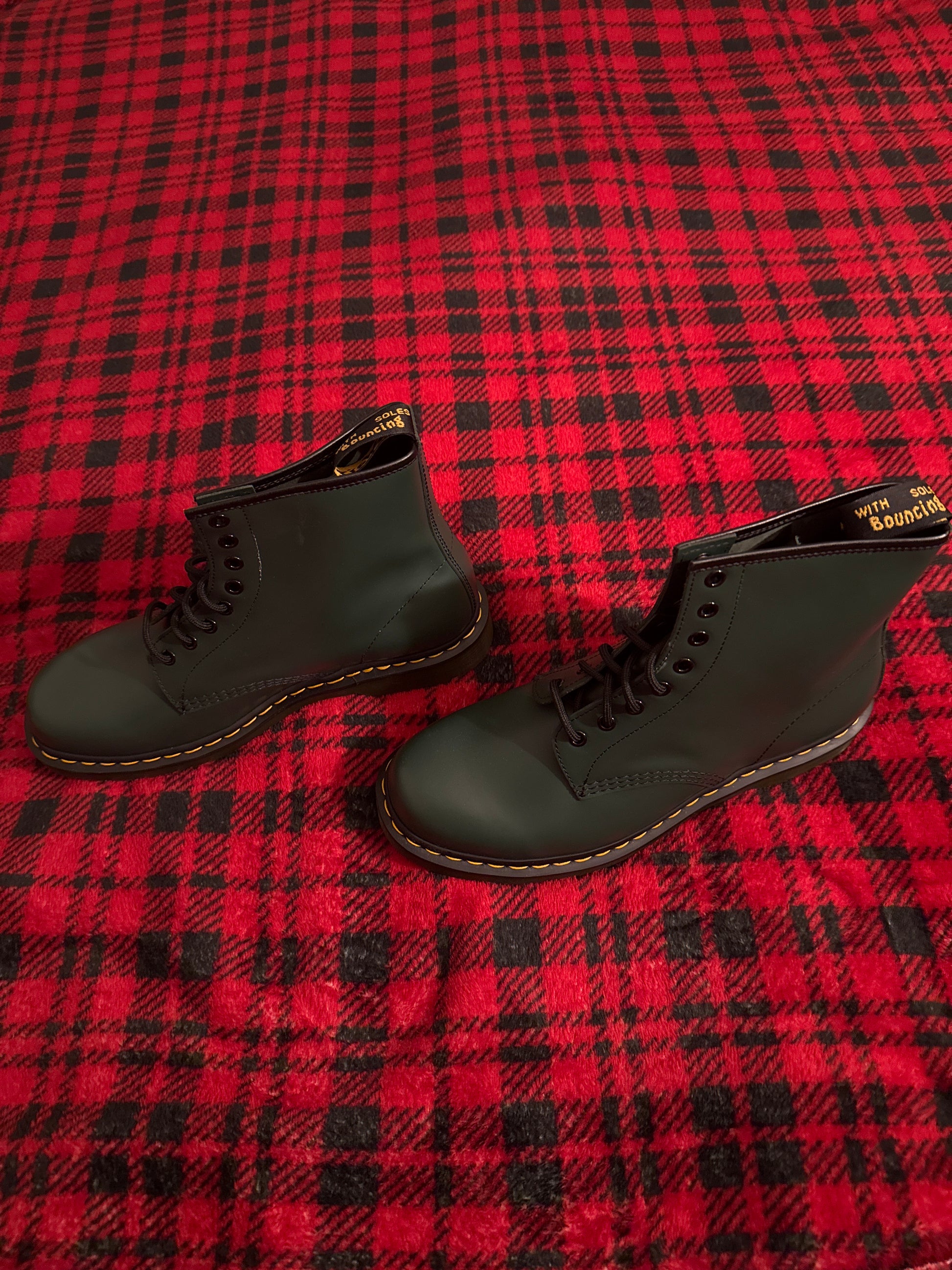 These gorgeous green smooth leather boots wil catch many’s attention walking the streets of any fair city. Dr. Marten’s Air With Sole Bouncing boots are a striking and electrifying addition to any man’s footwear locker. Strut your way down the road in these today!