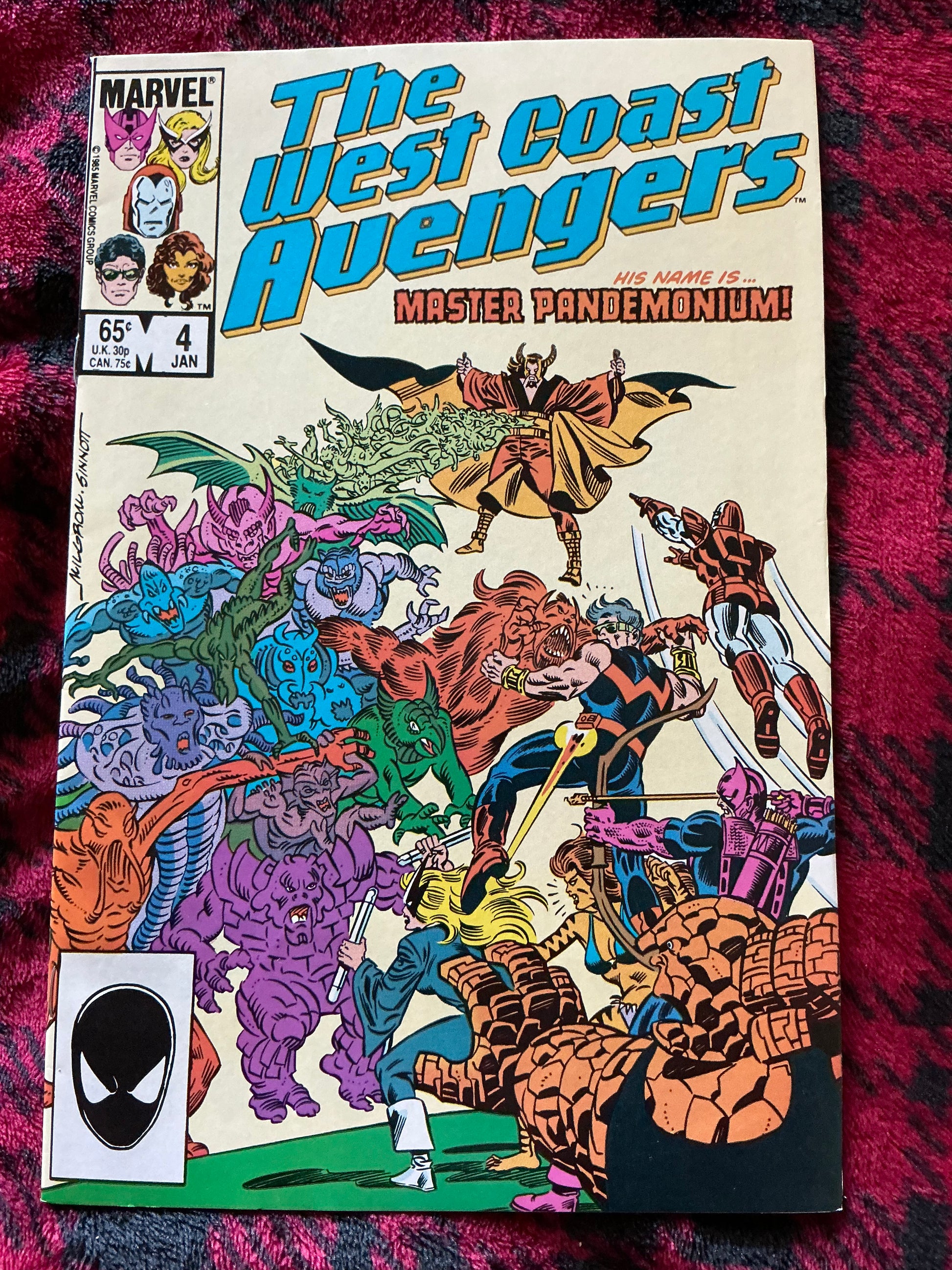 Discover the first appearance of Master Pandemonium in West Coast Avengers #4! This CGC 9.0 graded issue shows the team's mission to defeat the villain and his demon minions. With Iron Man on their side, can they stop Pandemonium from escaping and save the world? Plus, a potential romance between Firestar and Blue Bolt.Introducing the newest issue of the West Coast Avengers #1! Join Iron Man and War Machine as they assemble a unique team with a mission to rehabilitate supervillains into heroes. Don't miss out on this new era for the West Coast Avengers.