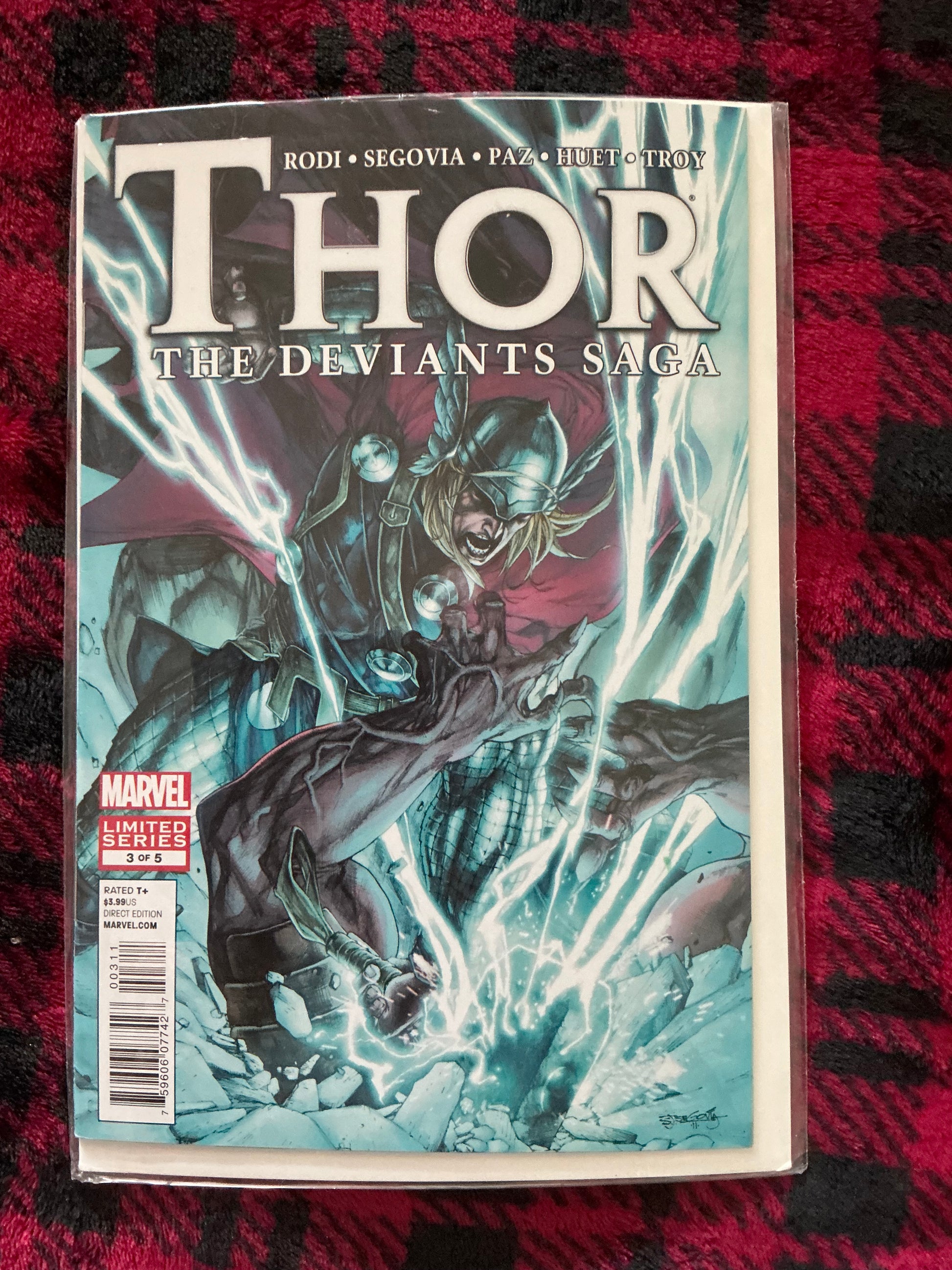 Discover the third installment of the epic Thor: The Deviants Saga limited series. Written by Rodi and illustrated by Segovia, Paz, Huey, and Troy, this issue continues the thrilling journey of Thor as he battles against powerful foes. Don't miss out on this action-packed adventure!